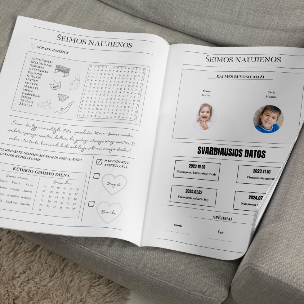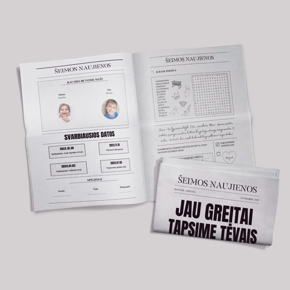 Šis laikraštis gali tapti puikiu prisiminimu, pranešimu šeimos nariams ir artimiausiems draugams ar net ir fotosesijos dalimi!