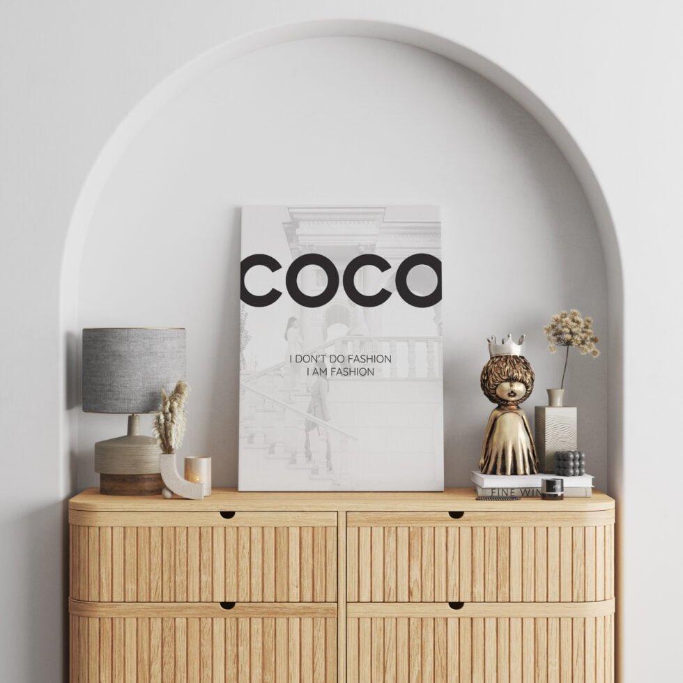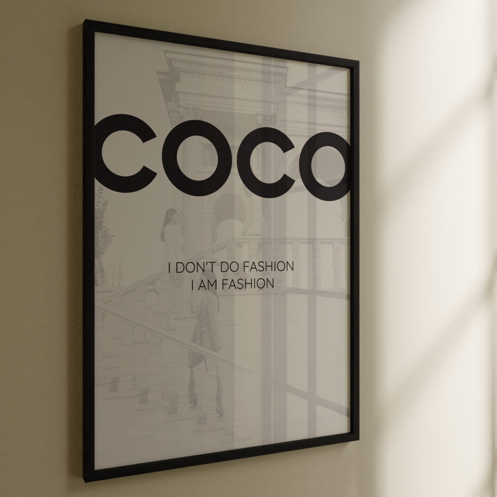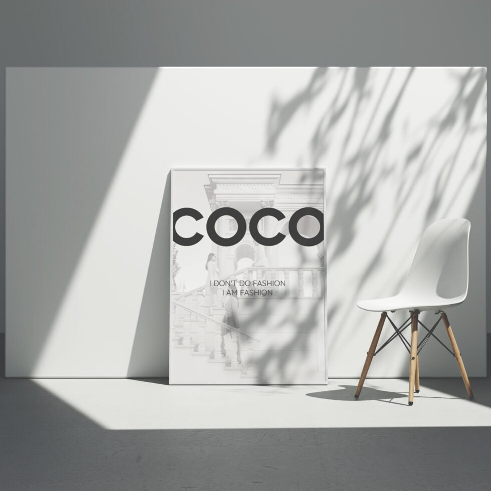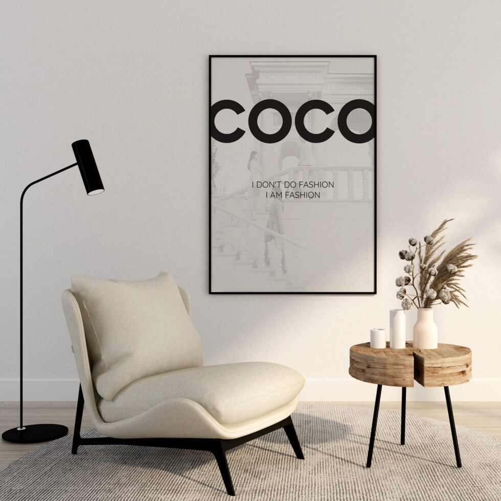 COCO paveikslas puikiai atspindi stilingumo ir kūrybingumo esmę. Spalvų paletė šiame paveiksle yra subtili ir elegantiška, naudojant daugiausiai pilką, juodą ir baltą spalvas. Paveikslas yra minimalistinio dizaino, išreiškiant modernią ir išskirtiną vizualinę kalbą.