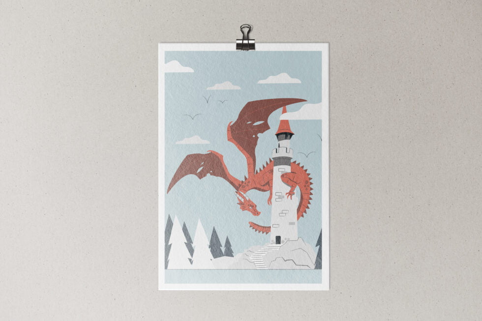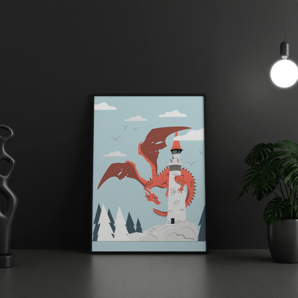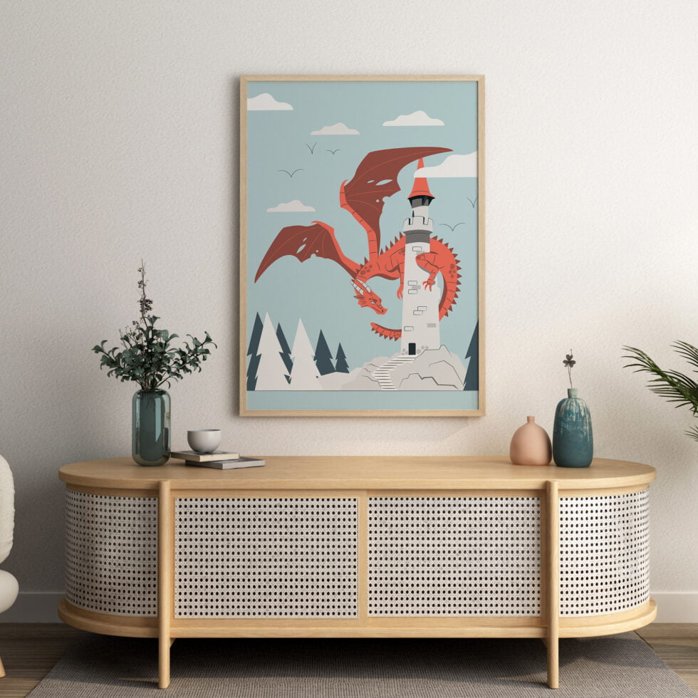 Suteikite vaikų ar kitam kambariui žaismingumo su paveikslu „Drakonas”.