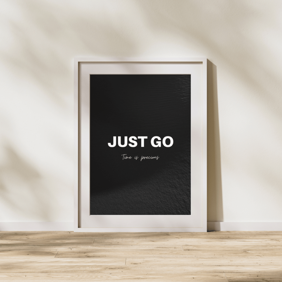 Paveikslas “Just Go” yra lengvai pritaikomo 50x70cm dydžio.