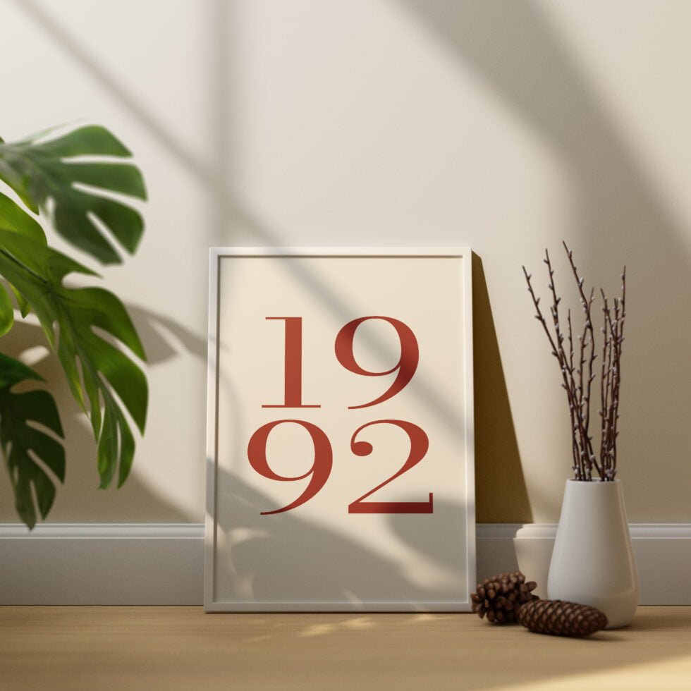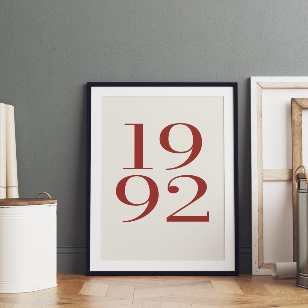 Personalizuotas paveikslas „Metai” – dramblio kaulas/raudona