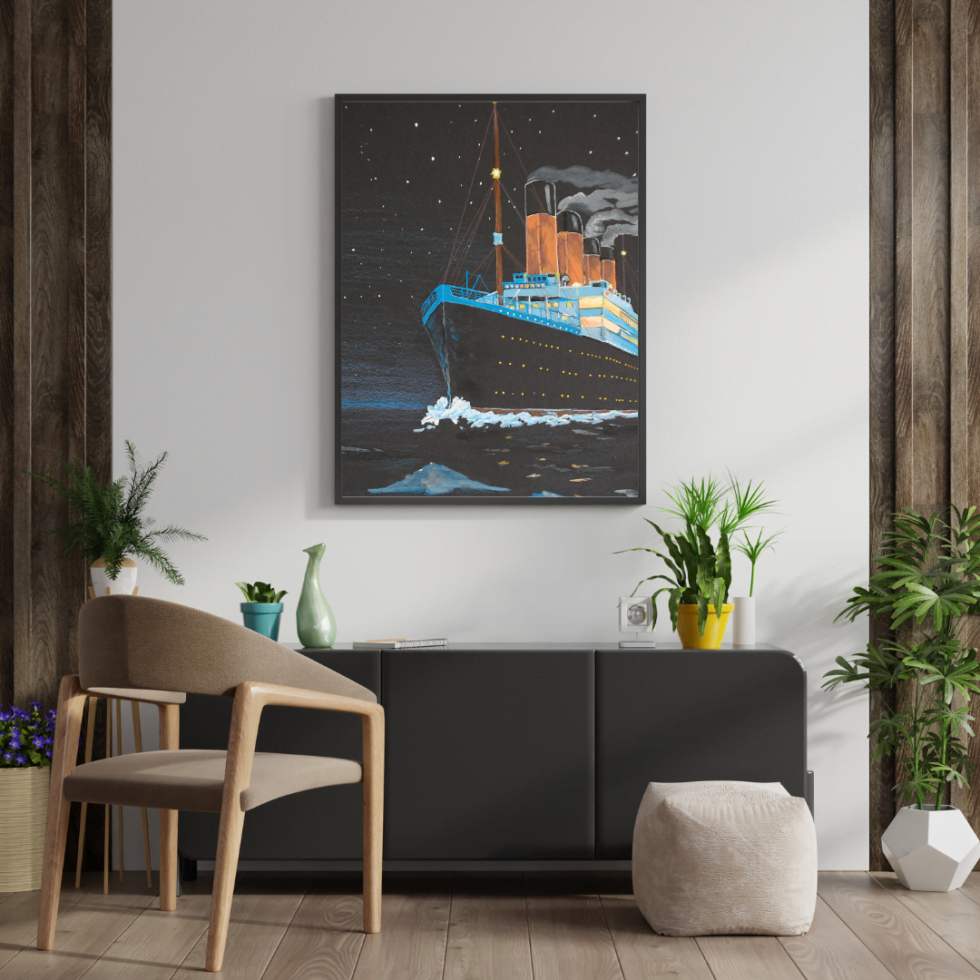 Paveikslas “Titanikas” yra lengvai pritaikomo 50x70cm dydžio.