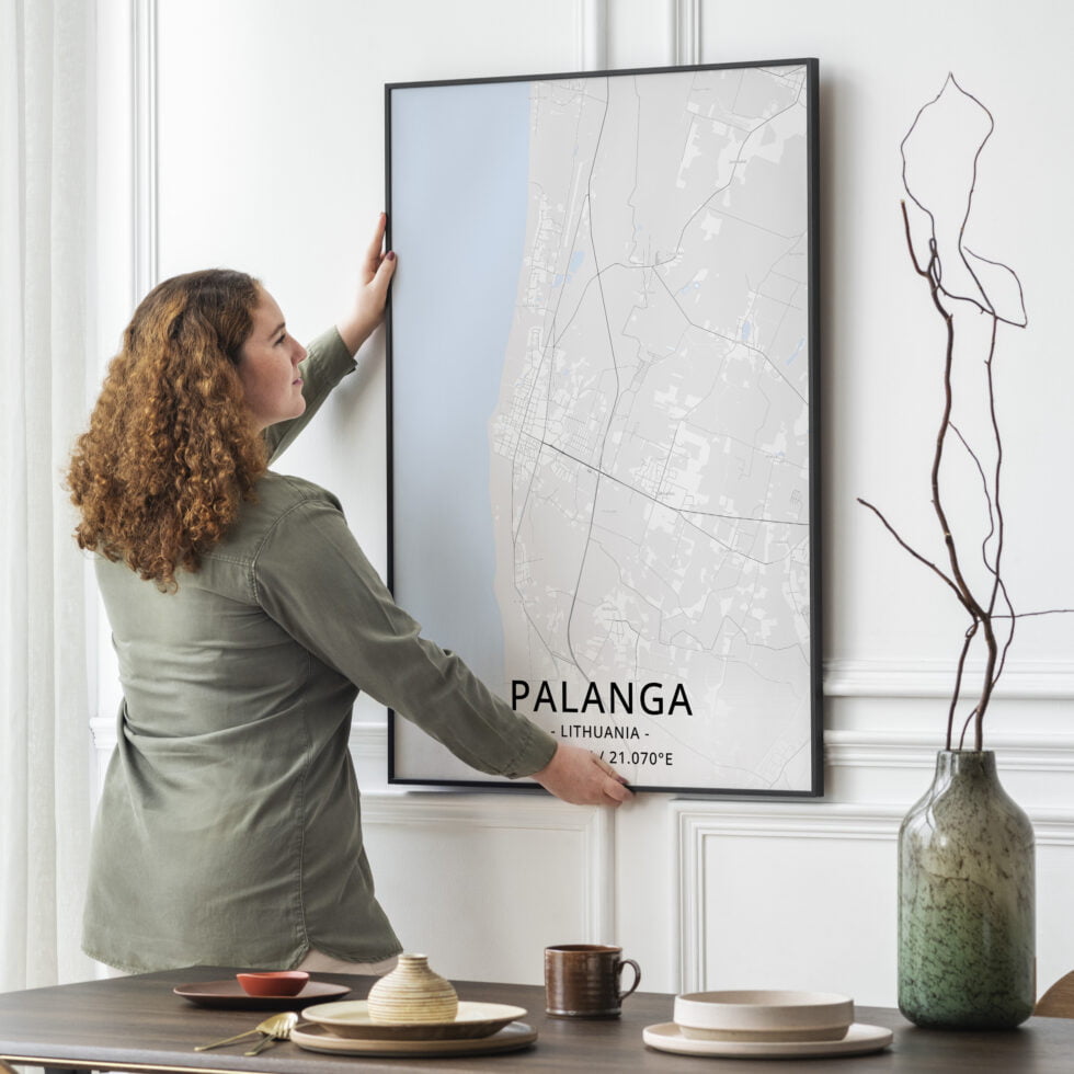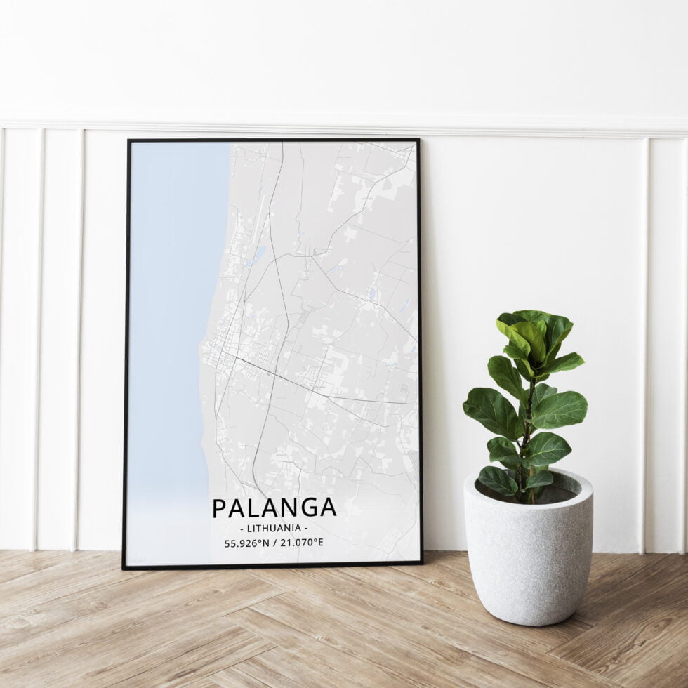 Pristatome jūsų namų dekoracijai idealų sprendimą – mūsų nuostabų Palangos miesto žemėlapio paveikslą 50×70 cm dydžio!