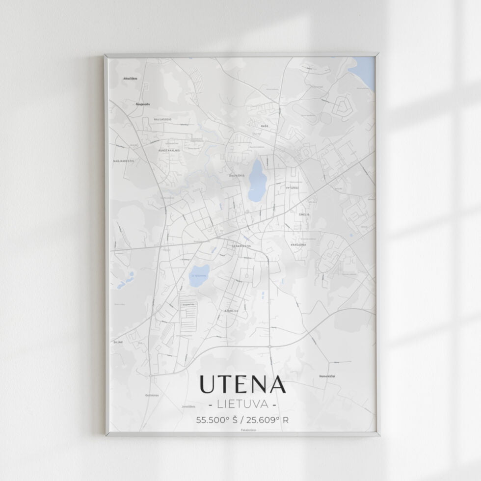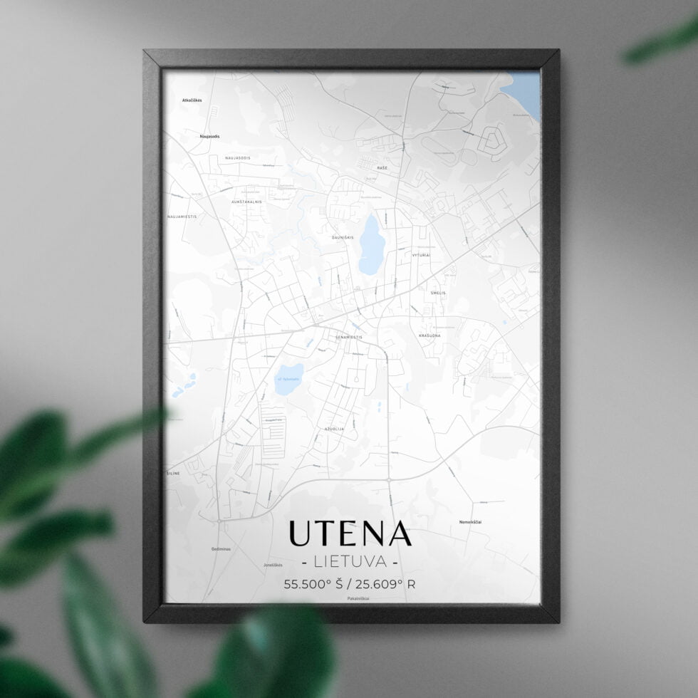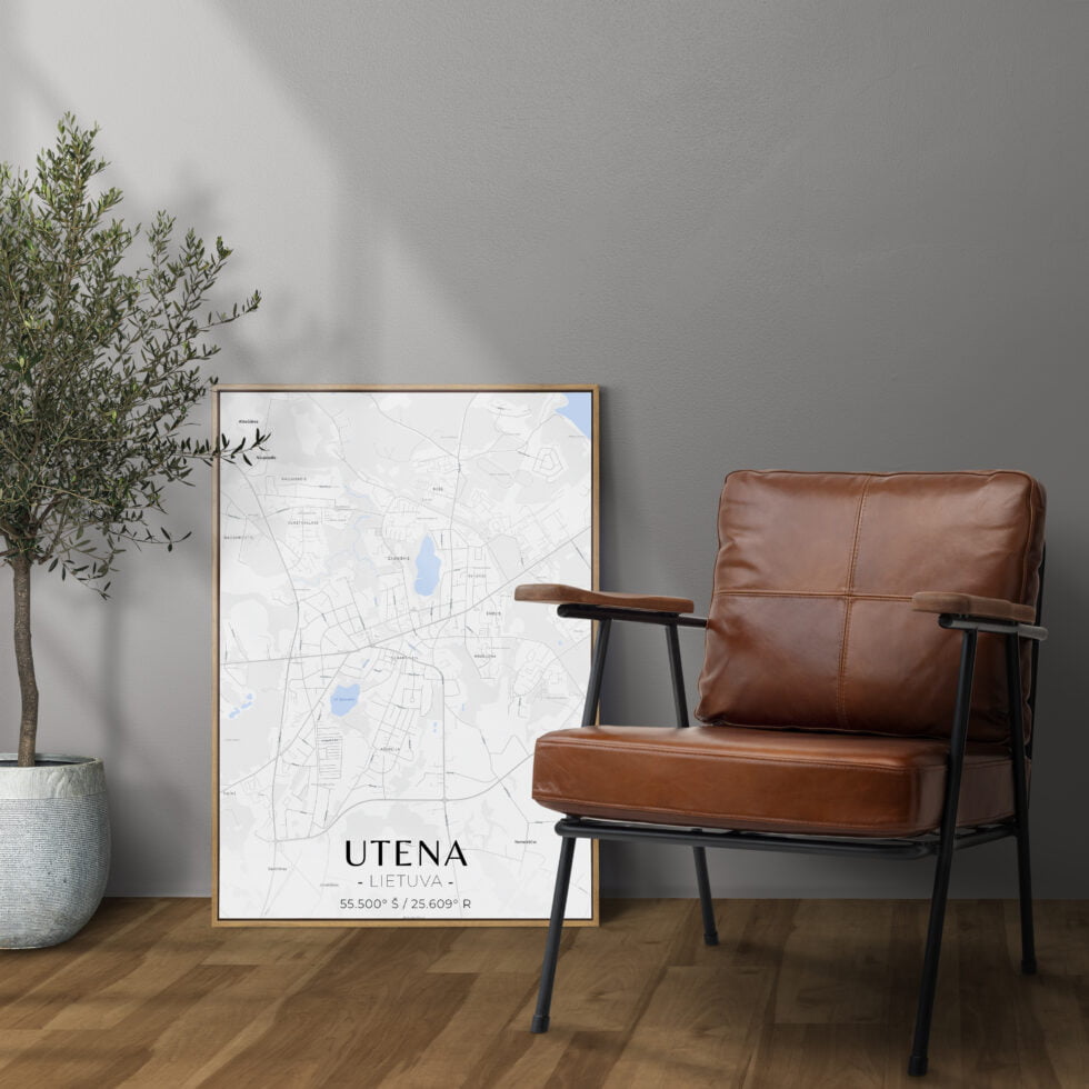 Pristatome jūsų namų dekoracijai idealų sprendimą – mūsų nuostabų Utenos žemėlapio paveikslą 50×70 cm dydžio!