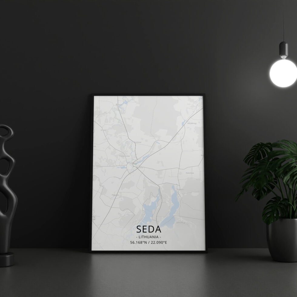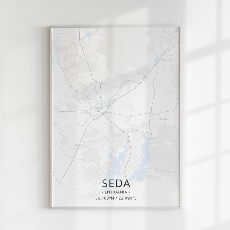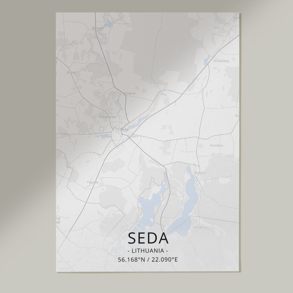 Stilizuotas žemėlapis “Seda” yra lengvai pritaikomo 50x70cm dydžio.