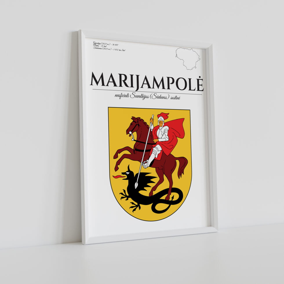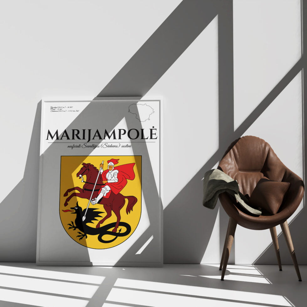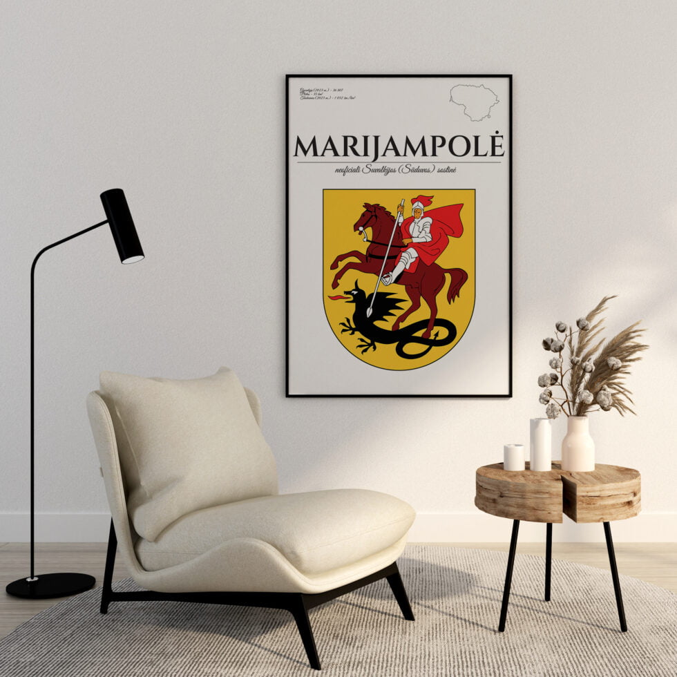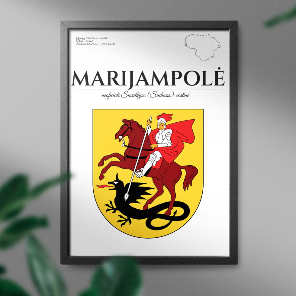 Pristatome jūsų namų dekoracijai idealų sprendimą – Poster.lt kurtą, nuostabų Marijampolės miesto herbą 50×70 cm dydžio!
