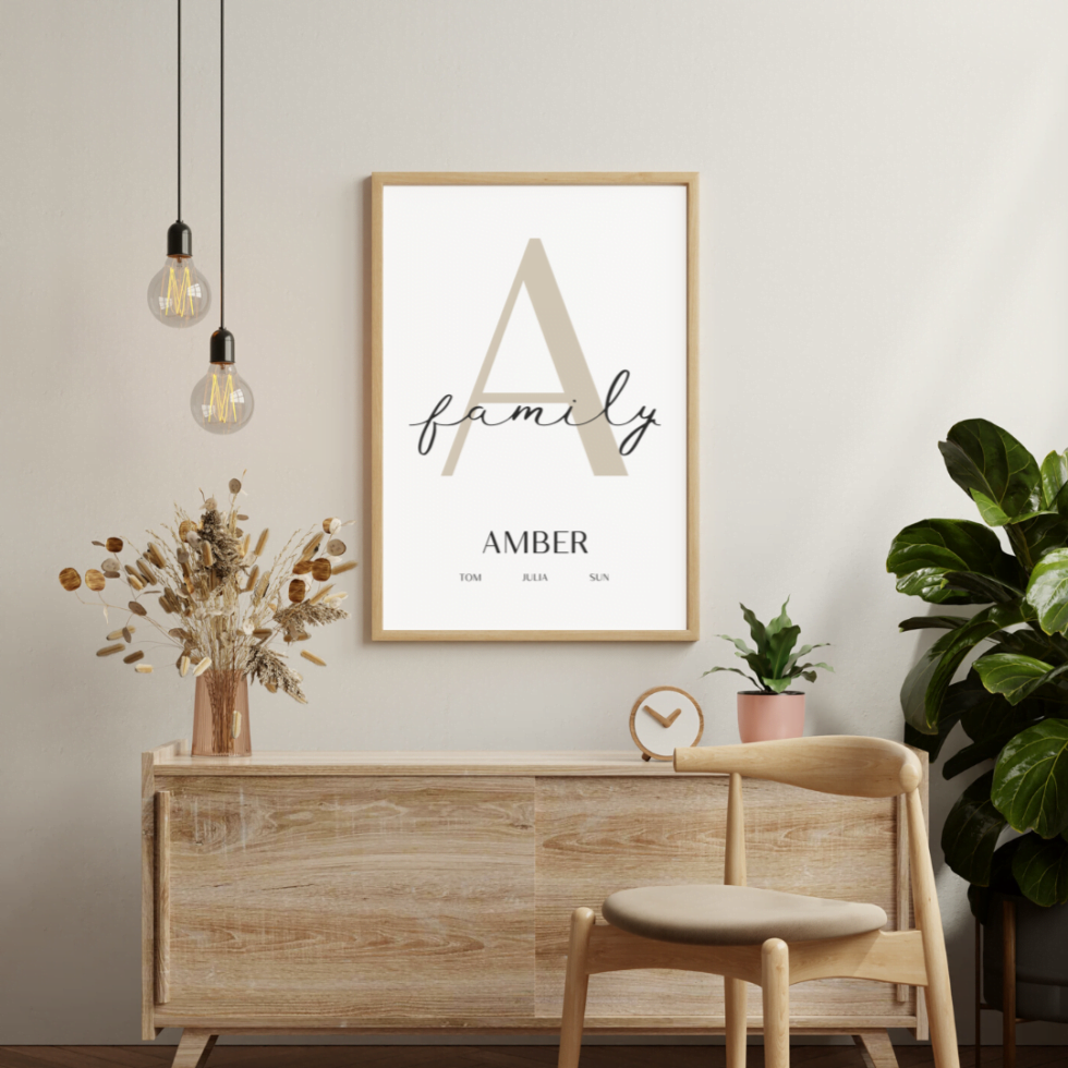 Šį paveikslą redaguojame pagal jūsų šeimos pavardę ir šeimos narių vardus. Taip pat galite pasirinkti spalvas, kurios puikiai derėtų su Jūsų namų interjeru.