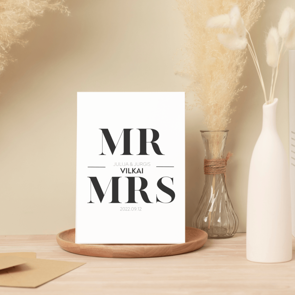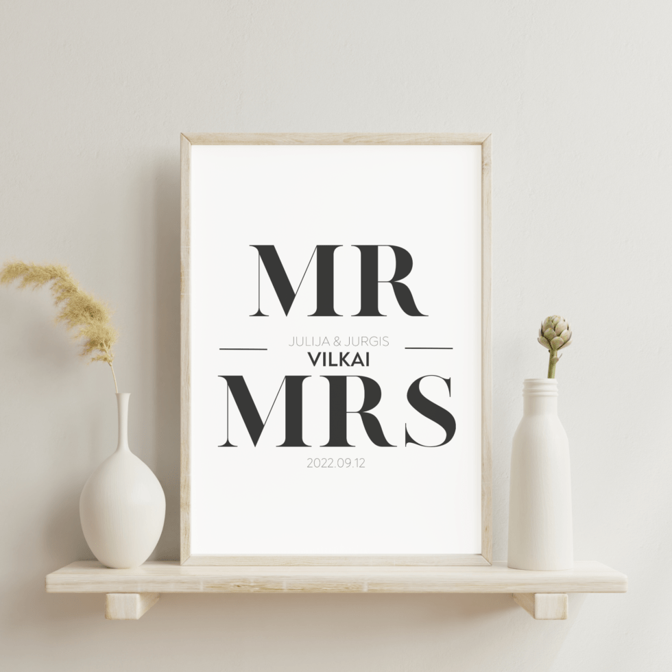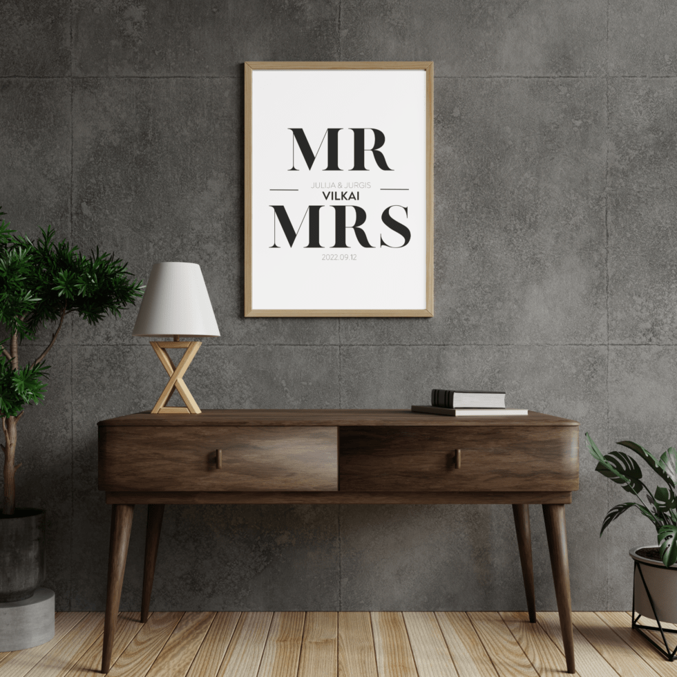 Personalizuotas paveikslas „MR ir MRS” yra lengvai pritaikomo 50x70cm dydžio.