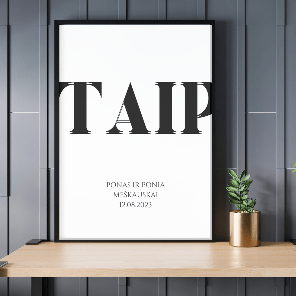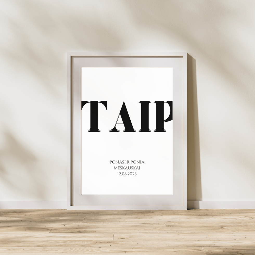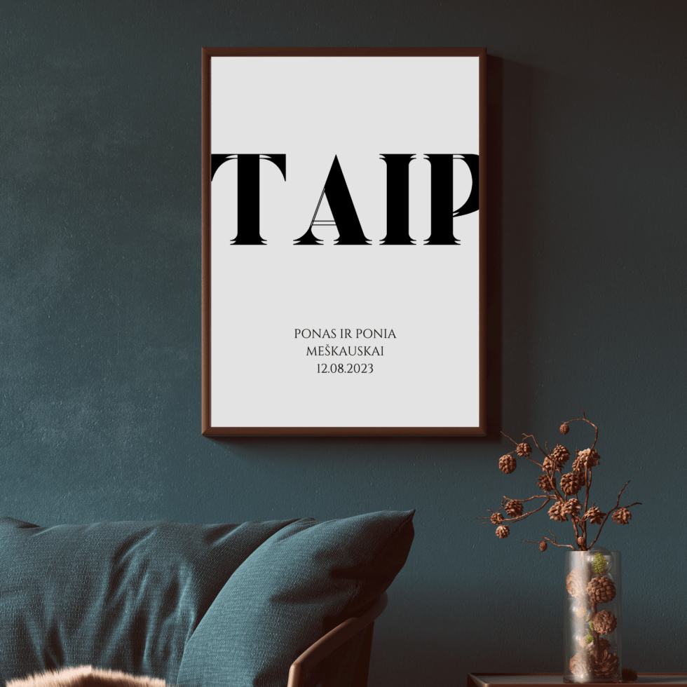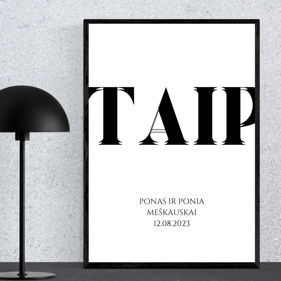 Personalizuotas paveikslas „Taip” yra lengvai pritaikomo 50x70cm dydžio.