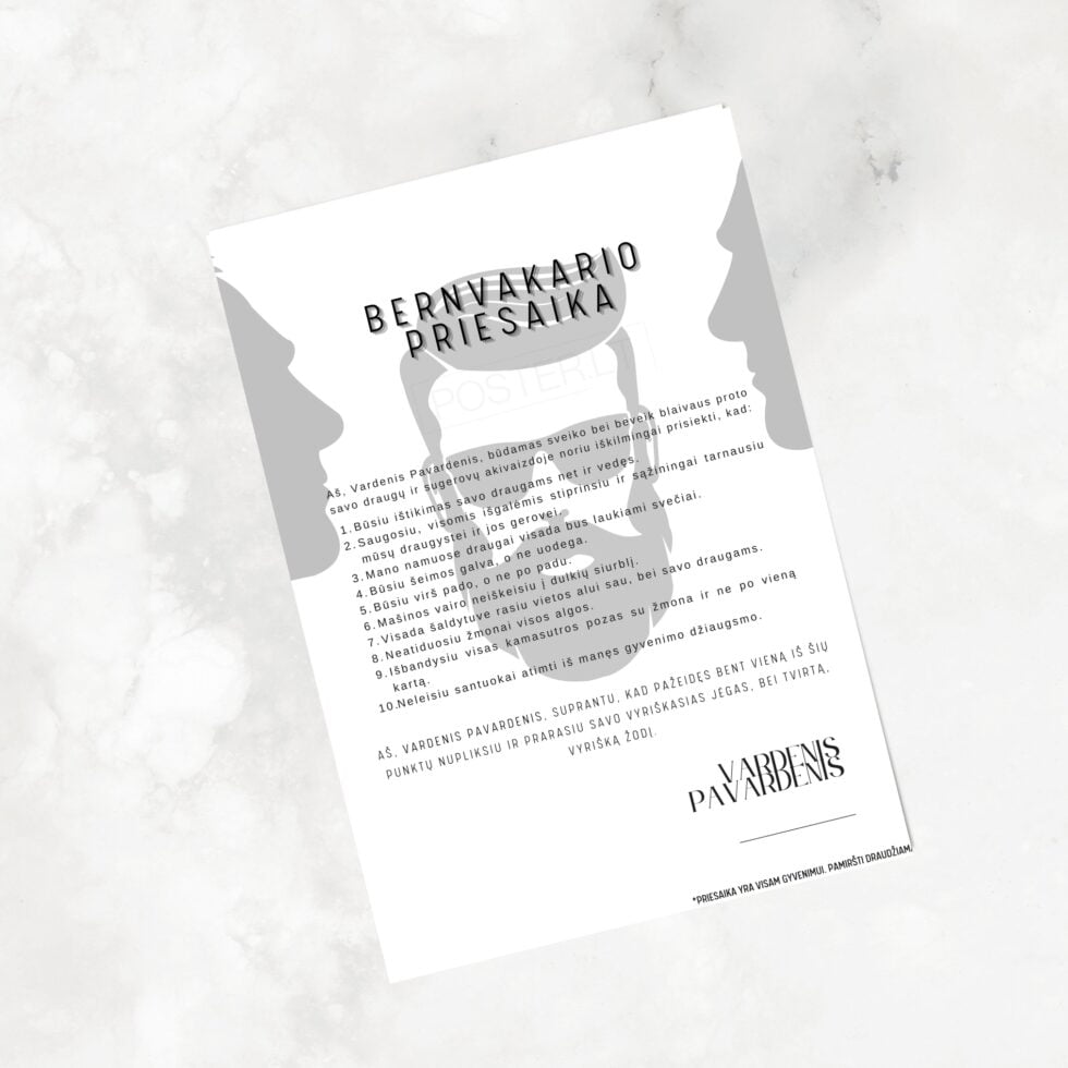 Elektroninė versija: dėl priesaikos informacijos pakeitimo susisieksime el. paštu ir suderinsime detales. Patvirtinus priesaiką, pasidalinsime PDF failu.