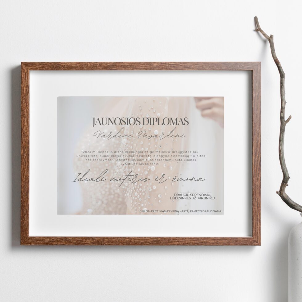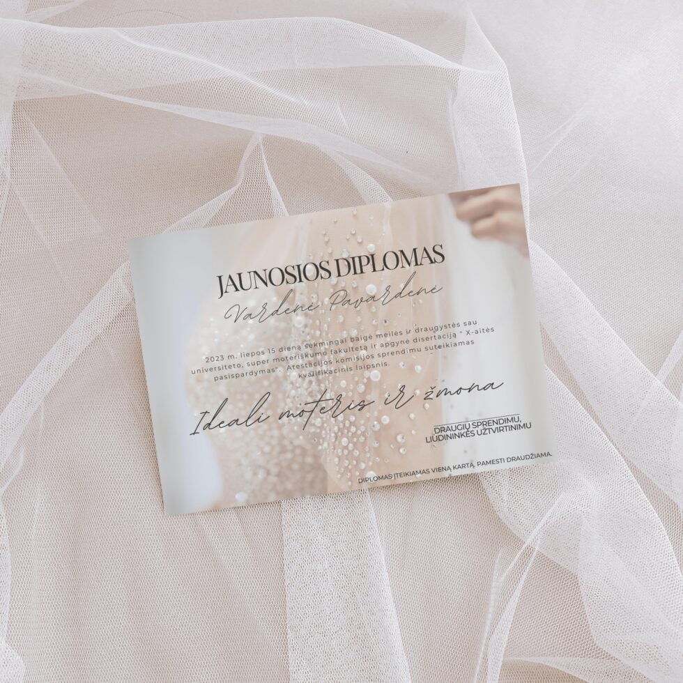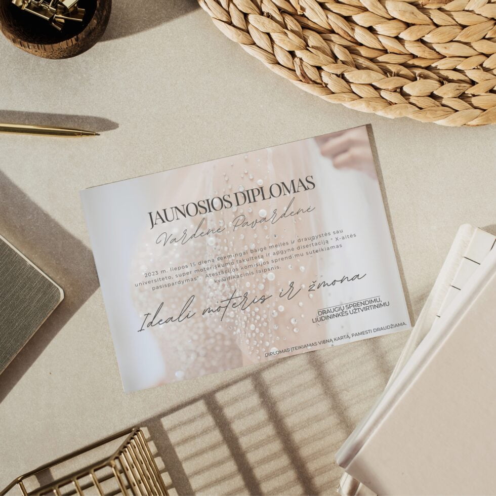 Stilizuotas ir išskirtinis Jaunosios diplomas Jūsų puikaus mergvakariui užtvirtinti!