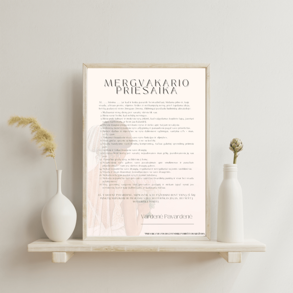 Jaunosios priesaika yra pateikiama su humoru ir turi bent minimaliai atitikti jaunąją. Tad jeigu norite minimaliai pakeisti tam tikrus punktus – parašykite mums!